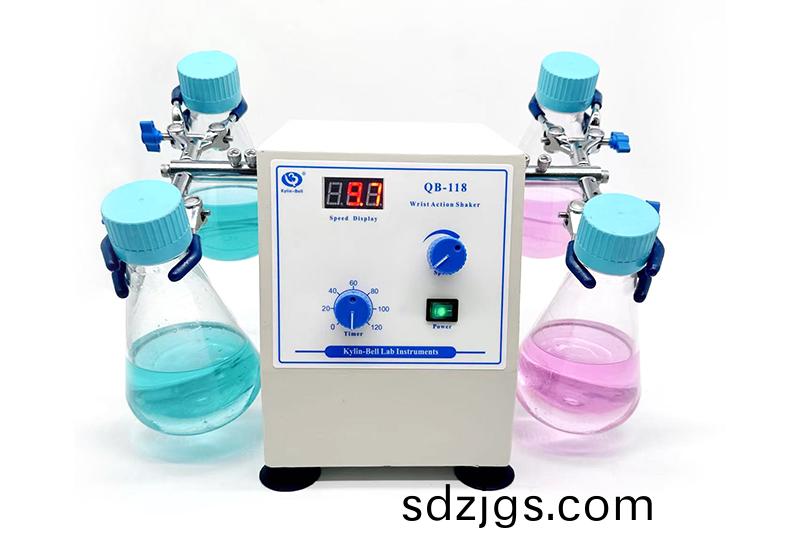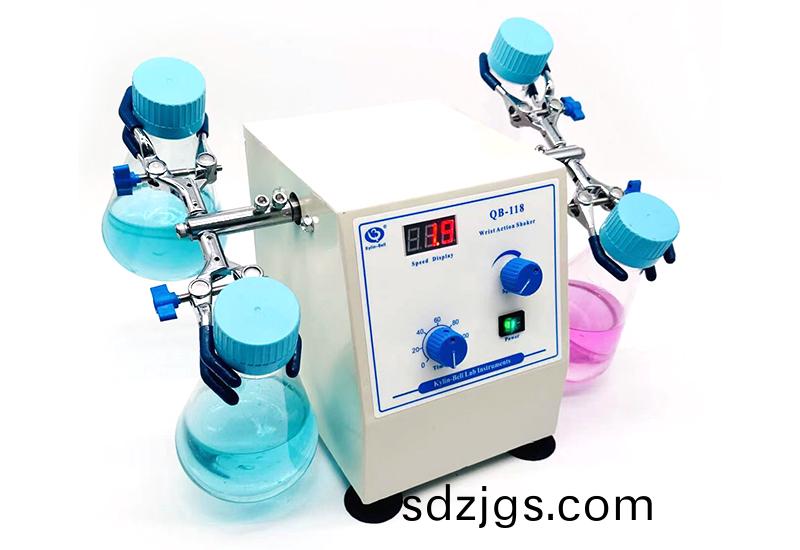 腕(wan)式(shi)振(zhen)盪(dang)搖牀QB-118適用于生物(wu)、化工、化(hua)粧(zhuang)品、飲(yin)料、醫藥(yao)、製藥(yao)等(deng)領(ling)域,用(yong)于(yu)液(ye)體的振(zhen)盪搖勻。